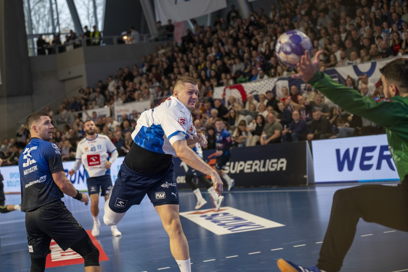 Druga połowa to już demonstracja siły Nafciarzy. Rozpoczęta bramką Richardsona, szybko doprowadziła do wyraźnego odskoczenia. Skuteczność z linii 7. metra utrzymywał francuski rozgrywający Nafciarzy, a w ataku brylowali Zarabec i Szita oraz Kosorotov, który w ostatnich minutach dorzucił trzy bramki, a ostatnim golem meczu ustalił wynik na 33:21 na korzyść niebiesko-biało-niebieskich.