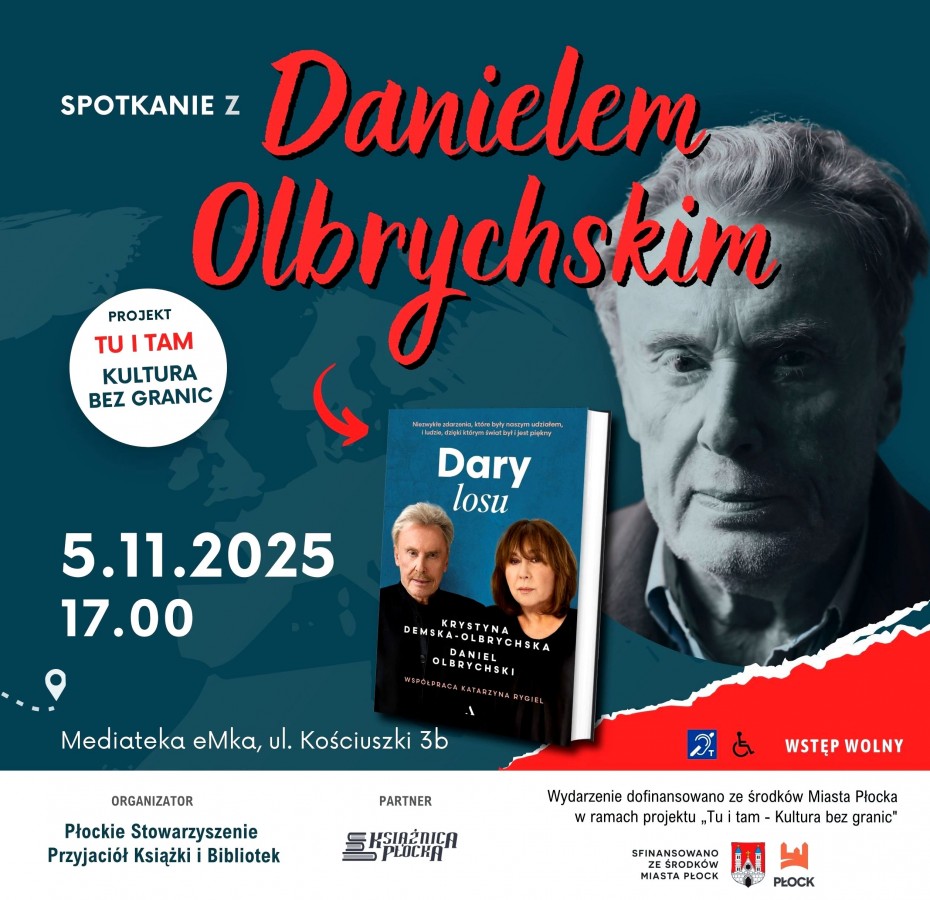 Z płocczanami Daniel Olbrychski spotka się w Mediatece w ramach projektu „Tu i tam - kultura bez granic” realizowanego przez PSPKiB w partnerstwie z Książnicą Płocką. Wstęp wolny, ale liczba miejsc ograniczona.