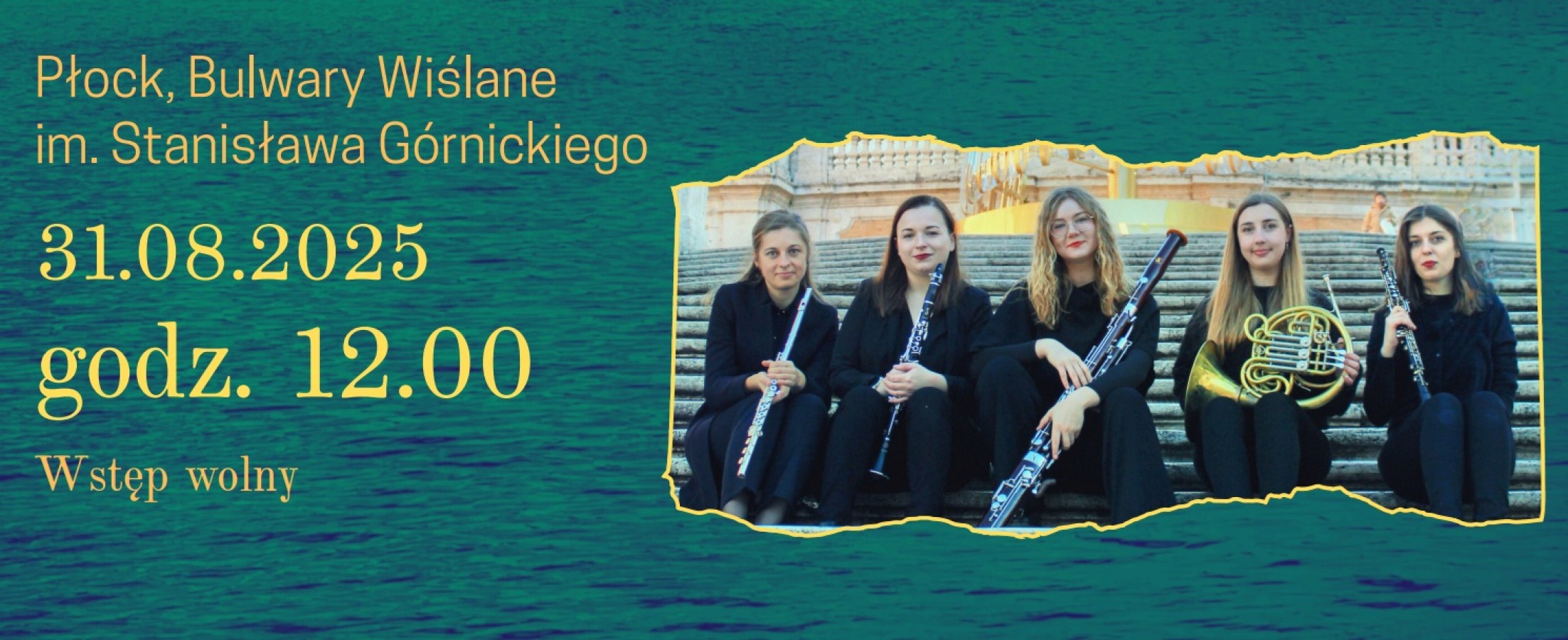 Wesprzyj Jeśli jesteście ciekawi, jak w otoczeniu Wisły zabrzmi kwintet dęty oraz jak odnajdą się w tych okolicznościach przyrody najpiękniejsze nuty muzyki klasycznej? Jeśli tak to nie pozostaje nic innego, by zapisać w kalendarzu datę 31 sierpnia i wybrać się na koncert "Klasyka z przytupem".