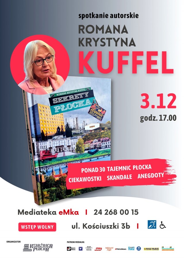 Wesprzyj Książnica Płocka zaprasza 3 grudnia o godz. 17.00 na spotkanie autorskie z Romaną Krystyną Kuffel i promocję książki „Sekrety Płocka”.